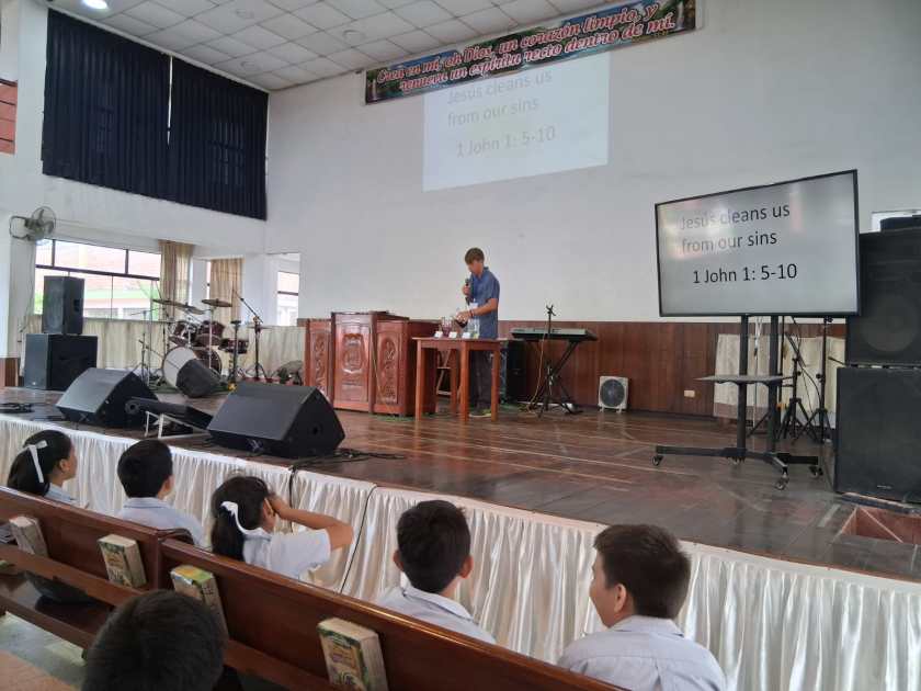 In addition to Fall Ball this week, our high schoolers also took part in English week at Colegio Hosanna. Three of our boys led chapel, giving a devotion in English and Spanish to the Peruvian school’s student body. Our students also participated in English classes having one-on-one conversations with their students. We have a really great relationship with this school and are so thankful for the opportunity for our kids to interact with the students there.