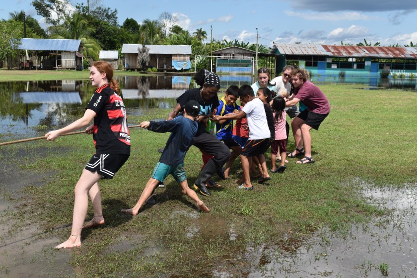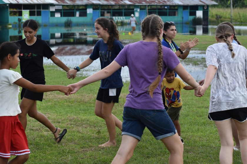 In February, our High School students did a week of ministry aboard the boat “Evangelista” with a group from Carmel Christian school in NC. The mornings of this camp/VBS ministry for the students were spent in Bible sessions and worship, while afternoons included preparing for ministry outreach in the mestizo community “Providencia.” The kids stepped up to the task of learning new games, songs and choreography in just a short time though the repetition constant rehearsal did lead to some bad cases of earworms. (You can google that particular “parasite” if you aren’t sure what it is…insert smiley face) These ministry trips allow OUR students to get out and reach OTHER kids for Christ, while growing in their own faith as they put that faith into action.