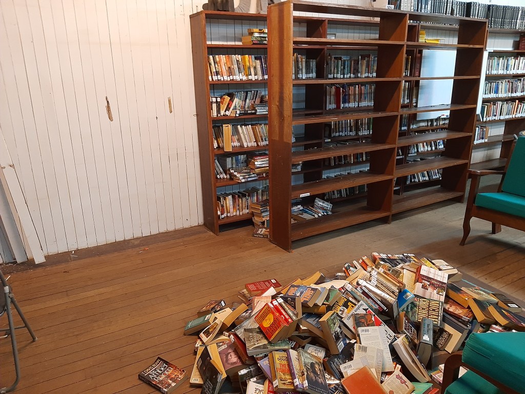 …And we continue to be thankful for those same volunteers as several of the dads jumped in to help us rescue our library. A large termite nest was found above the library and with less activity at the school, I guess they found it safe to invade. My heart hurt as we threw out so many of our precious books. But the nest has been eradicated and superboard put over the wood to keep a future invasion from happening. Now we have to paint and reorganize the shelves. Mike reminds me that we are foreigners in their territory. *sigh* Such is school in the jungle!