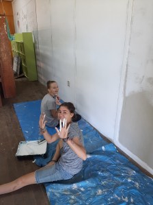 With this hope in our minds, we are diving into school projects over the summer, “reclaiming” buildings that have sat empty for over a year and a half. The men (Mike and our principal, Bill) have been hard at work making updates to our elementary teacher Olivia’s house. We are so excited to have her return to a bathroom floor that isn’t falling in! Bill also tackled the second site of devastation in the library and repaired the damage done by termites while our “summer work crew,” aka Ella and her friend, painted so our library can soon be termite-free and usable again! In the meantime, I have been sprucing up classrooms and getting them cleaned up and ready to go.